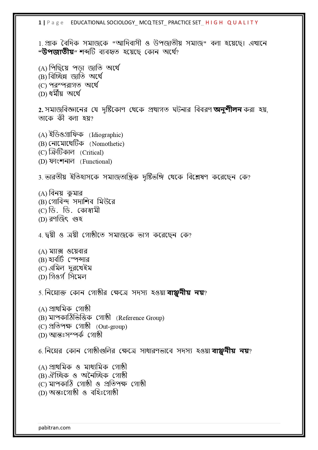 PRACTICE SET_HIGH QUALITY_EDUCATIONAL SOCIOLOGY_ MCQ TEST_